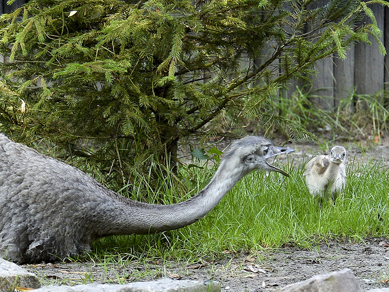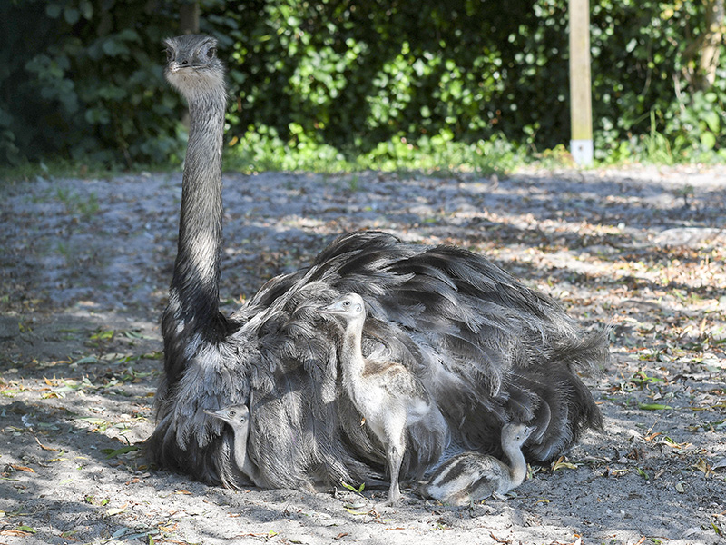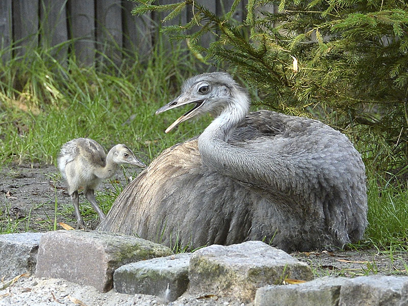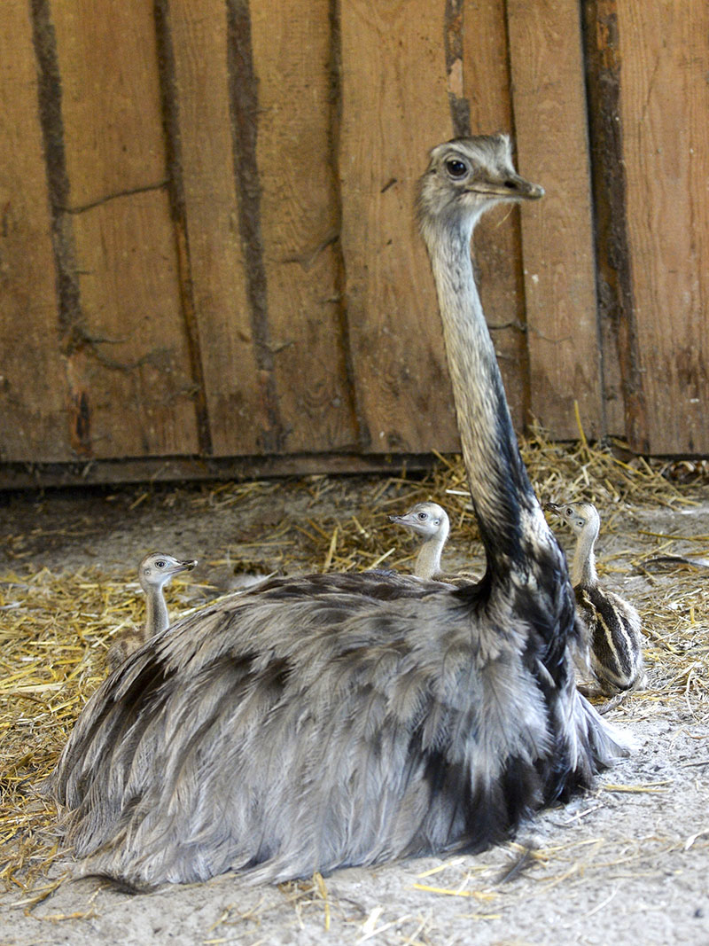 Bei den Nandus (Laufvogel Südamerikas) kümmert der Vater sich um den Nachwuchs. Für ihn heißt es: Nest bauen, Eier ausbrüten und Aufzucht der Küken und alles allein. Das weibliche Geschlecht braucht ausschließlich die Eier in die vorbereitete Erdmulde zu legen. Und das dürfen gern auch mehrere Damen tun.