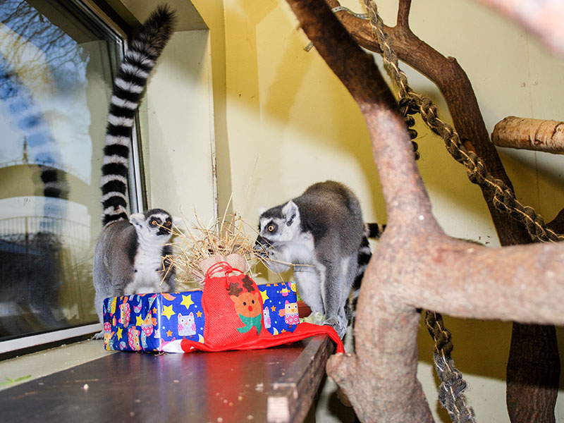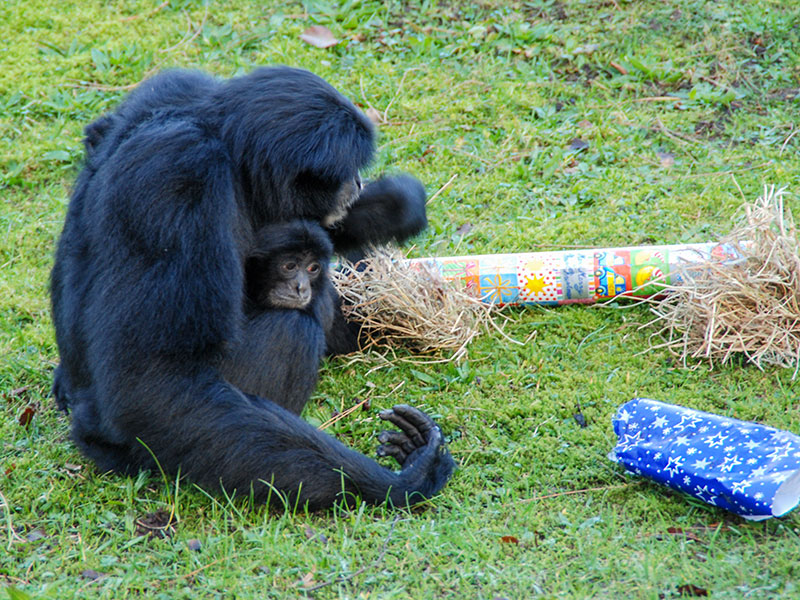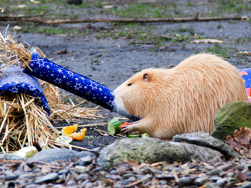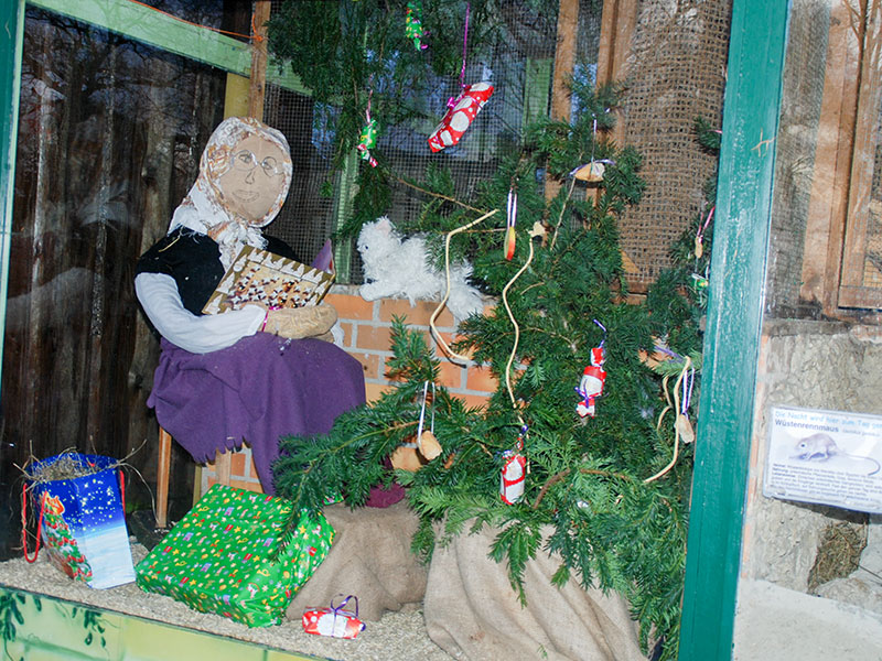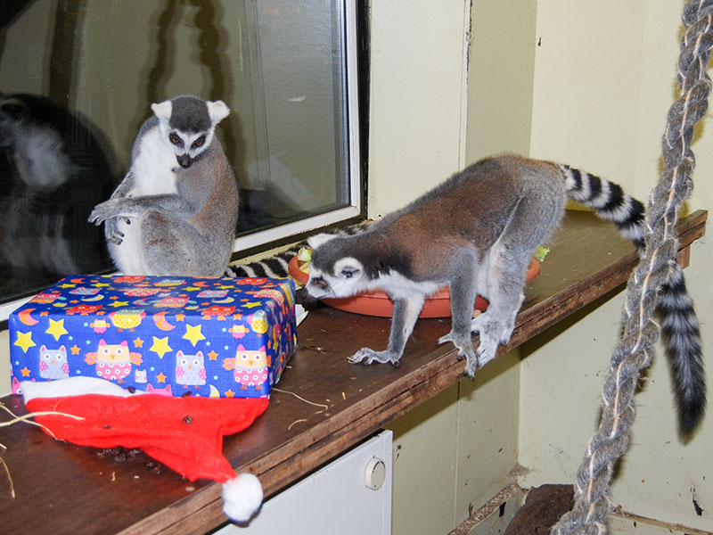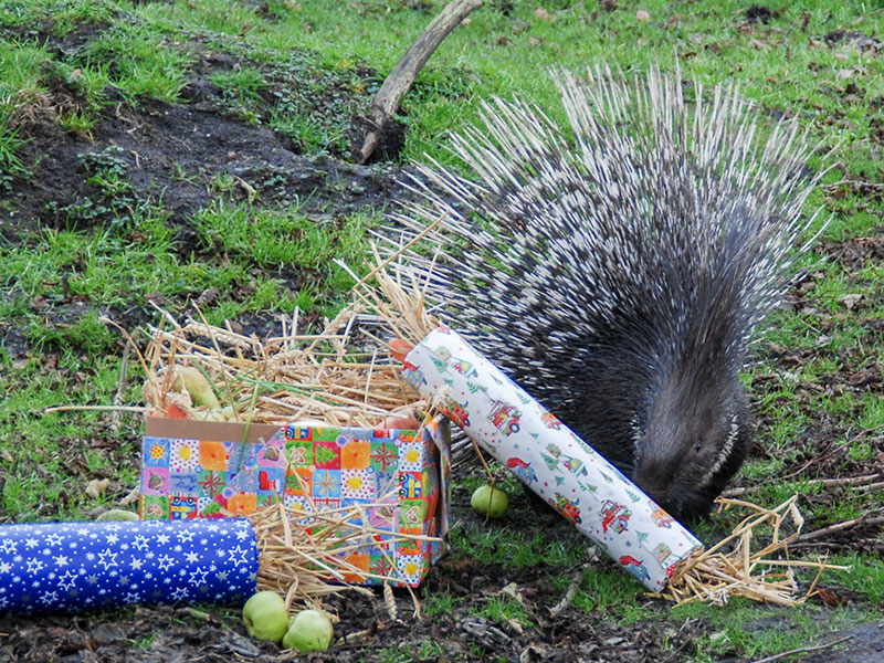 Weihnachten ohne Geschenke, das wünscht sich sicher niemand. So sollen auch unsere Bewohner im Tierpark nicht leer ausgehen. Jedes Jahr werden von den Pflegern liebevoll Päckchen gepackt in denen die Lieblingsspeisen ihrer Schützlinge stecken. Zusätzlich wird durch diesen kleinen Spaß noch ein ganz wichtiger Punkt in der Tierhaltung erfüllt. Das Auspacken und Suchen nach den Leckereien ist eine gute Beschäftigung und wirkt der Langeweile entgegen.
