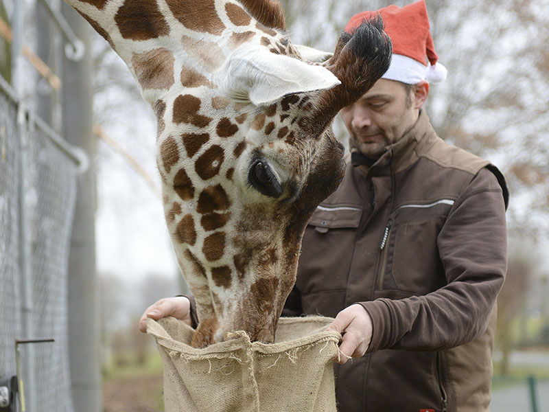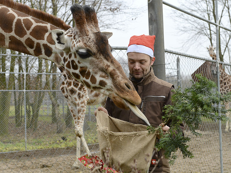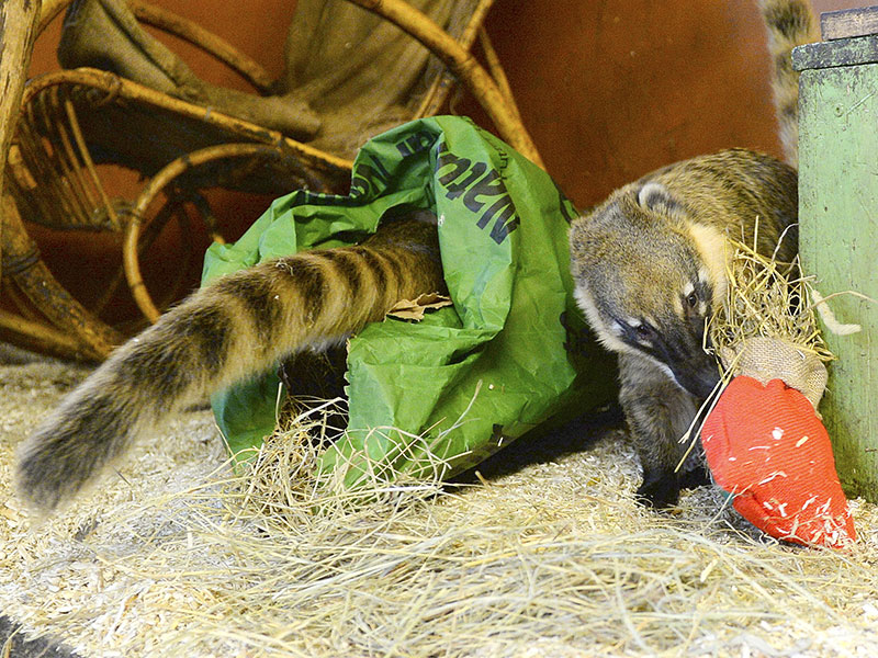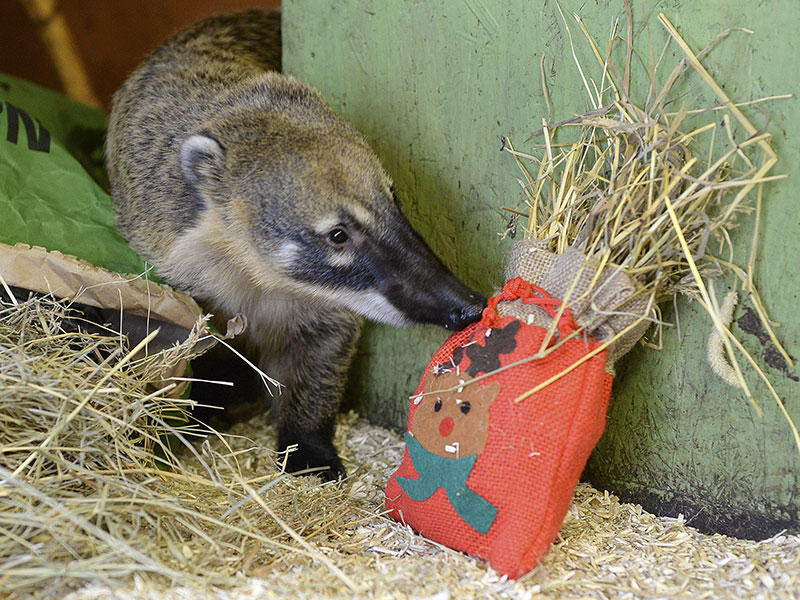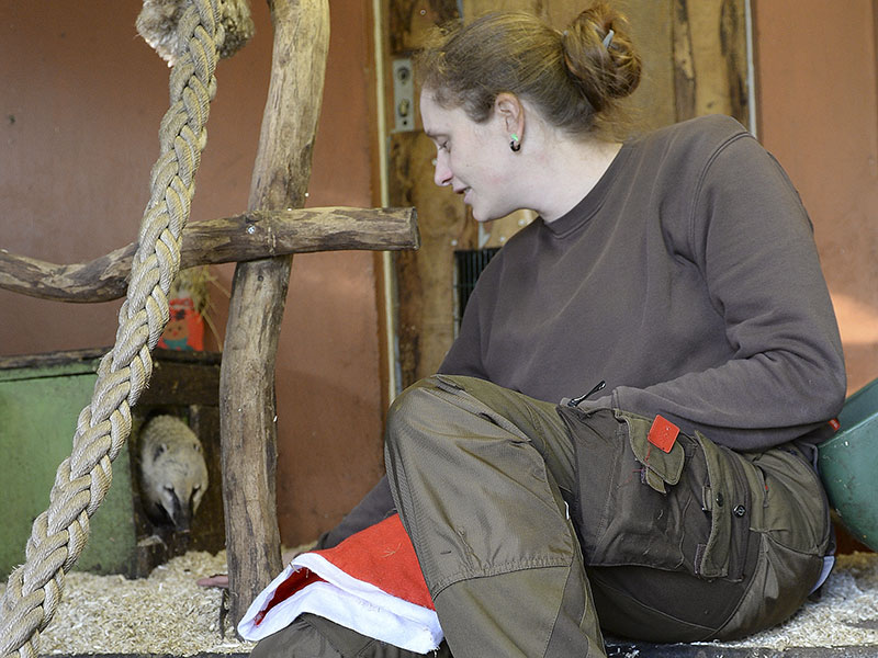 So erlebten unsere Tiere Weihnachten. Nasenbären, Giraffen und viele mehr wurden von ihren Pflegern mit kleinen Leckereien verwöhnt.